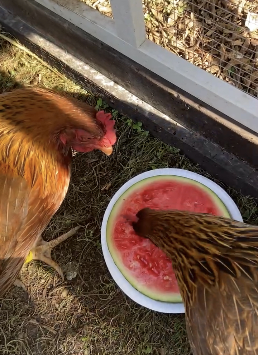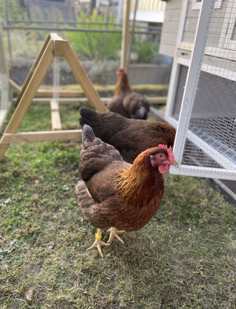Här är våra tre Welsumer-damer Doris, Elsa och Sally. Vi lär känna dem mer och mer. De älskar majs och vattenmelon mer än allt annat och föredrar att äta frön och godsaker från handen istället för skål eller marken. Att riva runt i träflis eller en grästuva med lite maskar och kryp i är galet roligt men att bli lyft är inte alls populärt. Att hoppa upp i knät för att få mest majs har Doris kommit på är taktiskt smart så det gör hon ofta. Katter som smyger sig fram skrämmer de bort så de inte vågar sig tillbaka. Har inte sett grannens katt på ett par veckor nu sedan de skrämde stackarn, tidigare såg vi den i stort sett varje dag. En lyx är ju såklart äggen. Vi får 1-3 ägg om dagen. Vi är inte självförsörjande men äggröra på egna ägg är lyxigt gott. Till våren hoppas vi kunna utöka med ca 3 st hönor till.